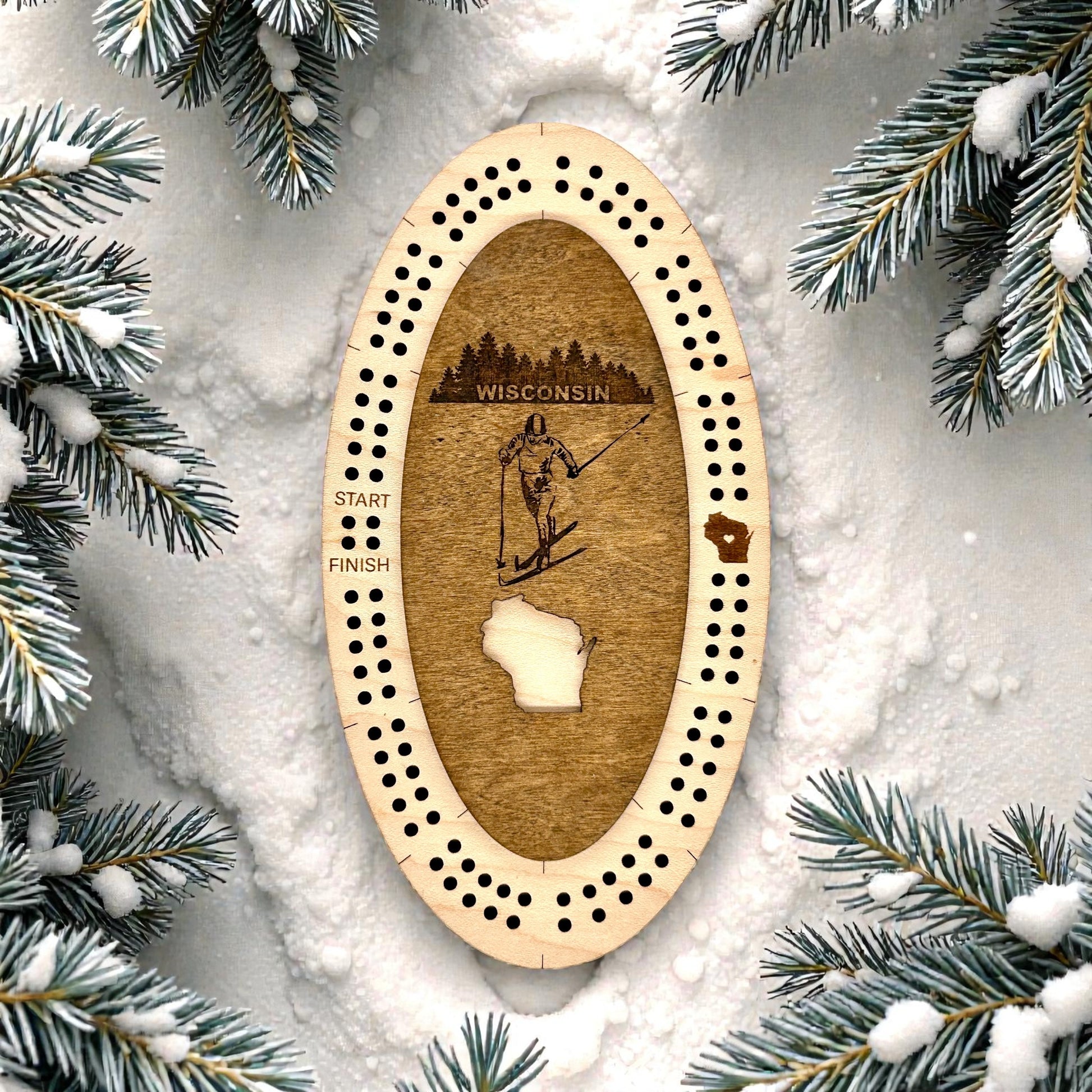 MN and WI themed half size cribbage board for a quick game on the go or for a full game. Magnetic top securely stores the 4 included cribbage pegs.